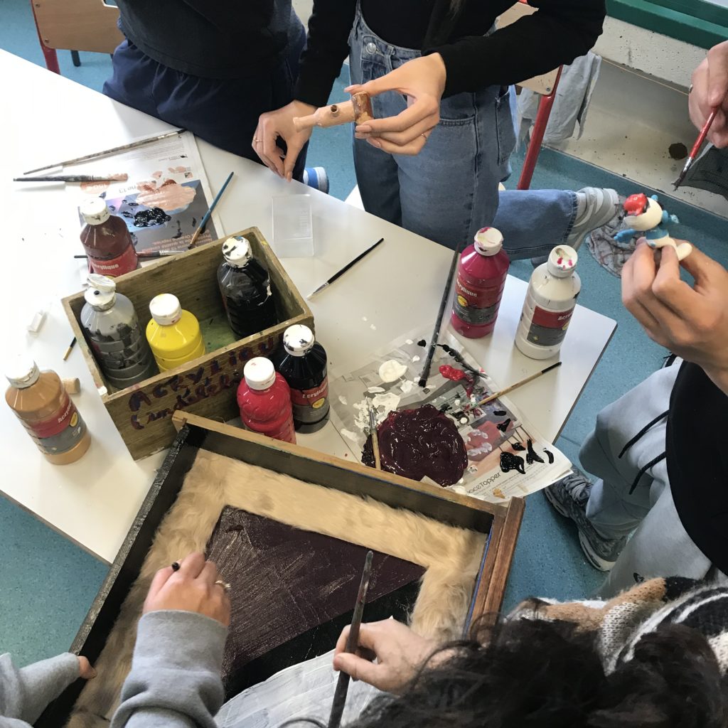 Par groupe de deux, les élèves de 3ème ont pu choisir l’un des nombreux tiroirs anciens mis à leur disposition dans lequel ils ont été invités à réfléchir et à réaliser un travail artistique sur la question de la dualité des choix en regard avec le témoignage émouvant de Gloriose Nguyen. Un travail en deux temps : ils devaient d’une part créer chacun un personnage à double face symbolisant la question du bien et du mal que l’on peut porter en chacun de nous et dans un second temps montrer cette dualité par un travail plastique à l’intérieur du tiroir. Chaque personnage trouvant sa place dans une boîte transparente dans le tiroir où leur face peut-être interchangée à l’image des choix auxquels nous pouvons être confrontés.